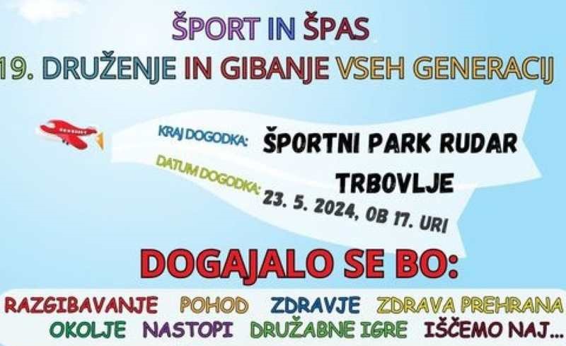 Vrtec Trbovlje pripravlja danes ob 17. uri v športnem parku Rudar v Trbovljah pripreditev Šport in špas, že 19. druženje n gibanje vseh generacij. Valjeni otroci, starši, stari starši in prijatelji. Kaj se bo dogajalo? Razgibavanje, pohod, zdravje, zdrava prehrana, okolje, nastopi, družabne igre, iščemo naj …