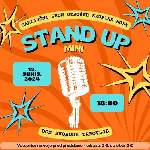 V Mladinskem gledališču Svoboda Trbovlje pripravljajo pravo stand up predstavo, no, pravi mini stand up predstavo. Danes ob 18. uri bodo v Domu svobode pripravili zaključni show otroške skupine, ki deluje v gledališču.