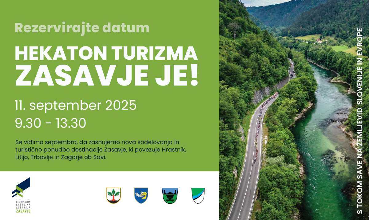 Regionalna razvojna agencija bo danes od 9.30 do 13.30 ure pripravila Hekaton turizma – Zasavje je! V dvorani Glasbene šole Zagorje v Vili Medea. Gre za povezovalno in kreativno srečanje, kjer bodo udeleženci snovali sodelovanja, ideje in rešitve za turistične produkte in ponudbo Zasavja kot destinacije, ki povezuje Hrastnik, Litijo, Trbovlje in Zagorje ob Savi. Na Hekatonu turizma bomo v ekipah iskali rešitve za izzive turizma v Zasavju in razvili 6 pilotnih produktov– od industrijske dediščine in kulinarike do aktivnih doživetij in sodobnih križancev na presečiščih turizma, novih tehnologij, dediščine in ustvarjalnosti.