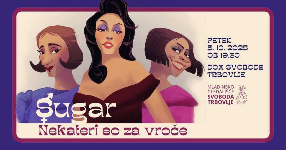 Mladinsko gledališče Svobode Trbovlje pripravlja danes ob 19.30 uri predstavo Sugar – Nekateri so za vroče. Gre za živahno in duhovito komedija, ki je priredba klasičnega filmskega muzikala Some Like It Hot. Dogajanje se odvija v dvajsetih letih 20. stoletja in sledi zgodbi dveh glasbenikov, Joeja in Jerryja, ki po naključju postaneta priči mafijskemu obračunu. Da bi se rešila, se preoblečeta v ženski in pridružita ženski jazz skupini. Joe postane Josephine, Jerry pa Daphne, kar prinaša obilico komičnih zapletov in situacij. V ospredju predstave je tudi Sugar Kane, očarljiva pevka in igralka, ki sanja o bogatem ženinu in boljšem življenju. Joe se zaljubi v Sugar in poskuša osvojiti njeno srce, hkrati pa se trudi ohraniti svojo masko. Jerry, zdaj Daphne, pa se znajde v še večji godlji, ko se vanj zaljubi bogati starejši gospod, Osgood Fielding. Avtorji besedila so Peter Stone, Jule Styne in Bob Merill (slovenski prevod Alja Predan). Režija trboveljske predstave je bila v rokah Annemarie Jerman, igrajo Anamarija Čančar, Mirza Ribič, Rok Kreže, Bogdan Šteh, Vid Šteh, Dejan Gerčar, Kaja Čop, Nastja Abdič, Venesa Smodiš, Živa Lisec in Nik Solina. Teta iz ozadje je Ajda Valcl, kostumogravinaja Dada Volk, oblikovalec svetlobe pa Sašo Kajtna.