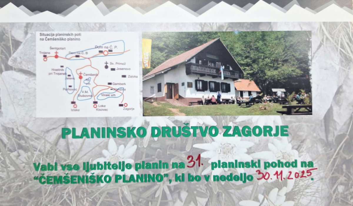 Člani Planinskega društva Zagorje ob Savi vabijo na 31. tradicionalni pohod na Čemšeniško planino na zadnjo novembrsko nedeljo. Na Čemšeniško planino se lahko odpravite iz večih izhodiščnih točk iz smeri Zagorja Lok pri Zagorju. Izlak in Trojan.