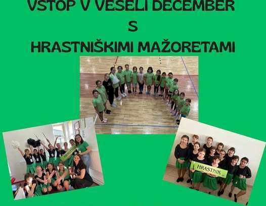 Kulturno umetniško društvo Mažorete Hrastnik pripravljajo danes ob 16. uri v Delavskem domu Hrastnik prireditev Vstop v veseli december s hrastniškimi mažoretami. Pripravljajo pester in raznolik program z gosti. Vstop je prost.