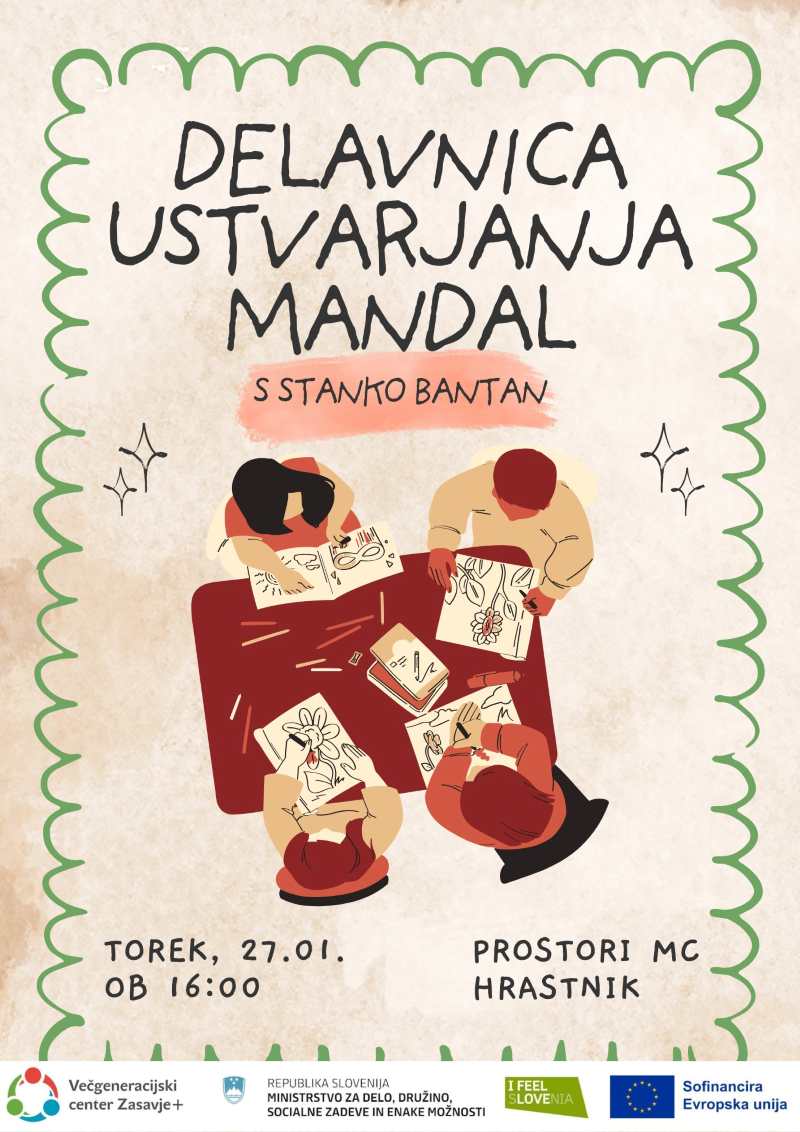 Zavod za mladino, šport in turizem Trbovlje vabi na sproščujočo in ustvarjalno delavnico ustvarjanja mandal s Stanko Bantan, ki bo tokrat ob 16. uri spet v prostorih Mladinskega centra Hrastnik. Skupaj boste raziskovali barve, oblike in notranji mir skozi umetnost.