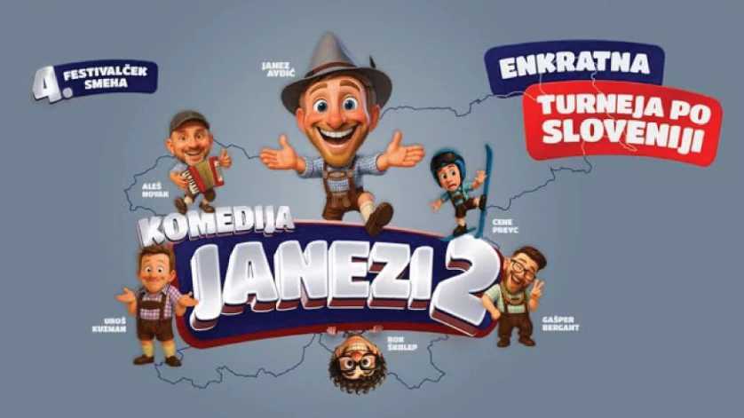 V Delavskem domu Trbovlje bo danes ob 17.30 in 20.30 uri Kontranbant pripravil komedijo Janezi 2. Gre za stand up komedijo, četrti tradicionalni FestiValček smeha na največji slovenski turneji. Nastopajo Janez Avdić, Gašper Bergant, Uroš Kuzman, Aleš Novak, Cene Prevc in Rok Škrlep.