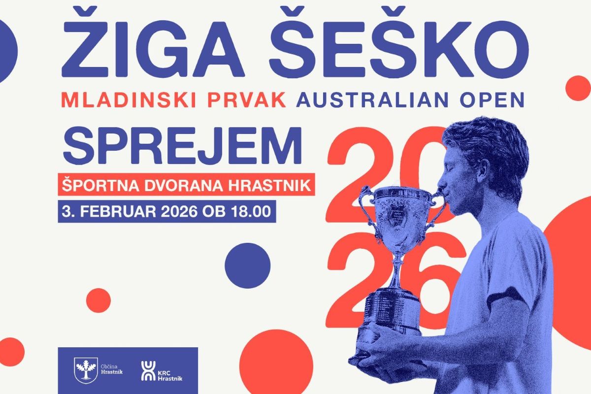 Občina Hrastnik vabi na slavnostni sprejem teniškega šampiona Žige Šeška, ki je osvojil odprto mladinsko prvenstvo Avstralije v Melbournu. Sprejem bo potekal v športni dvorani Hrastnik ob 18. uri.