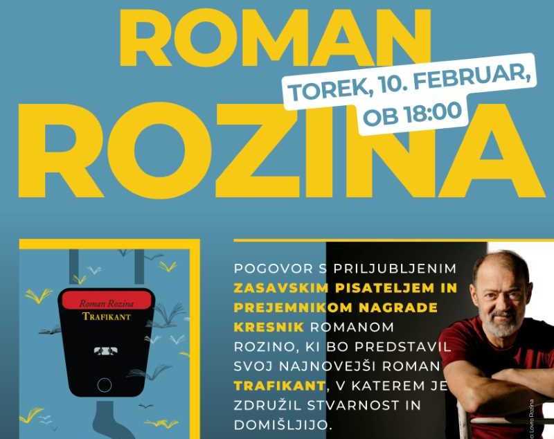 Danes ob 18. uri bo potekal pogovor s priljubljenim zasavskim pisateljem in prejemnikom nagrade kresnik Romanom Rozino, ki bo predstavil svoj najnovejši roman Trafikant, v katerem je združil stvarnost in domišljijo. Moderator dogodka bo dr. Tomaž Petek. Vstop prost.
