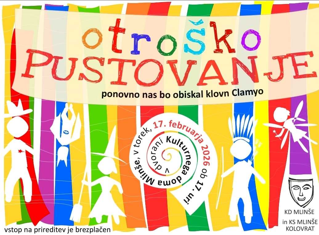 V kulturnem domu Mlinše pripravlja Kulturno društvo Mlinše danes ob 17. uri potekalo otroško pustovanje. Poleg druženja bo za dobro voljo poskrbel tudi klovn Clamyo.