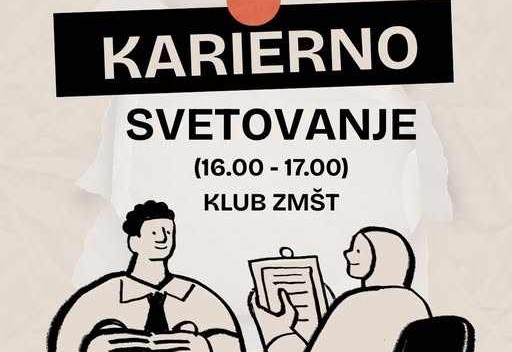 Vabljeni danes v klub ZMŠT na karierno svetovanje, ki bo potekalo od 16. do 17. ure. Svetovanje poteka v okviru projekta Z mladinskim delom proti prekarnosti mladih.