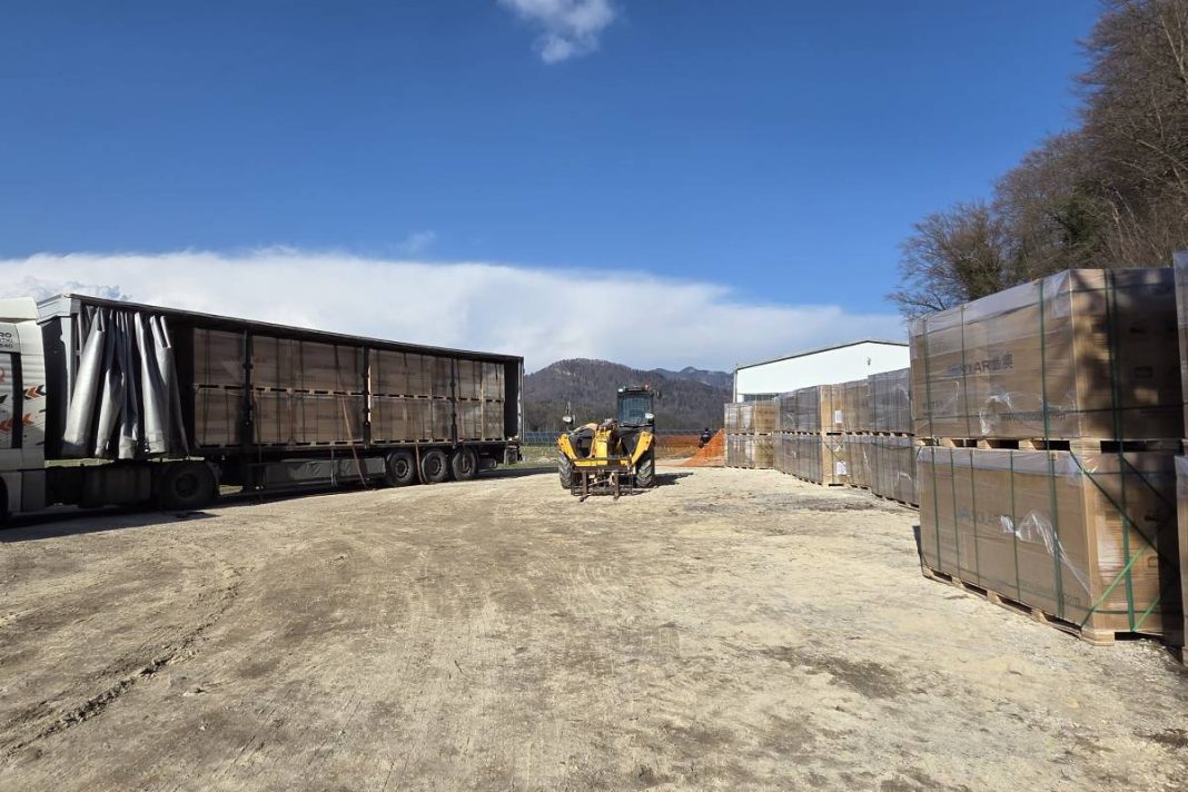 Trenutno poteka dostava opreme (podkonstrukija, moduli,…), vijačenje podkonstrukcije in nameščanje ohišja za trafo postajo, obenem zaključujejo gradbena dela.