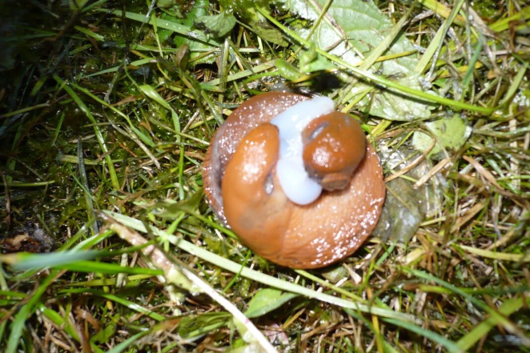 »Takole se konec meseca avgusta v naravi družijo polži,” je zapisala avtorica fotografije.