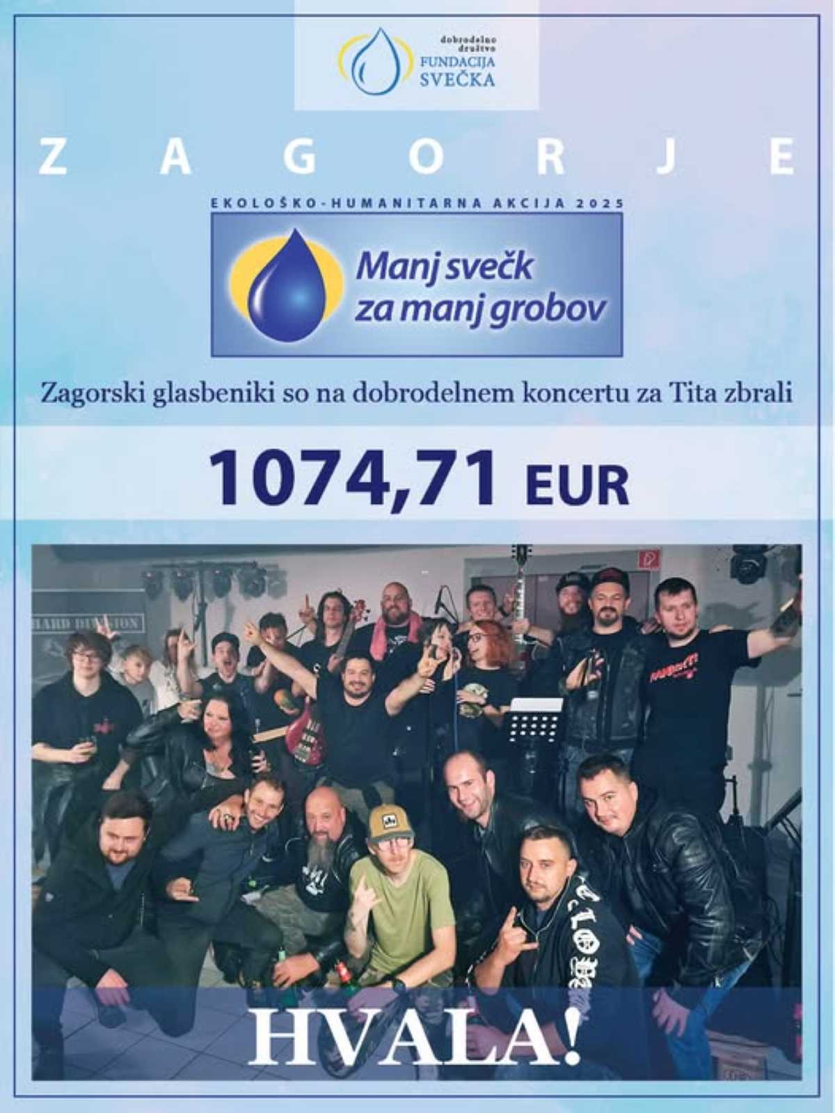 V soboto, 25. oktobra, je potekal v kavarni del Tiempo v Kisovcu dobrodelni koncert za 9-letnega Tita, kjer sta glasbeni skupini Don’t Mind Gravity in Hard Division, odlični zasavski zasedbi, svoj nastop namenili malemu Titu. V skrinjici se je nabralo 1074,71 evrov. Lepa gesta glasbenikov in obiskovalcev.
