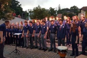 Stopnišče pred delavskim domom so v nedeljo, 14. julija, zavzeli ameriški glasbeniki, ki sodelujejo v projektu American Music Abroad. Nastopilo jih je 114, kar je tudi največje število sodelujočih doslej na poletnih prireditvah, ki jih organizira Delavski dom Trbovlje.