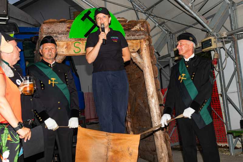 Rudarji RMED Perkmandelc Trbovlje in uniformirani rudarji so na prizorišče prikorakali skupaj z sedmimi kandidati. Po postrojitvi in rudarski himni, ki jo je zapel RPZ Loški glas, je starešina Stane Stanić izvedel protokol Skoka čez kožo za kandidate. Letošnja častna skakalka je bila Miss Slovenije 2024 Amadea Zupan, pridružili so se Anja Šerc, Boris Meterc, Aljaž Barlič, Magda Majes, Štefka Bezgovšek in Gašper Kapelari. Po zadnjem skoku je sledila svečana zaprisega: »Prisegam, da bom spoštoval tradicijo rudarjev, ki so pod zemljo pomagali drug drugemu in si bili tovariši v dobrem in slabem tudi, ko so prišli na površino. Uporabljal bom pozdrav Srečno!«