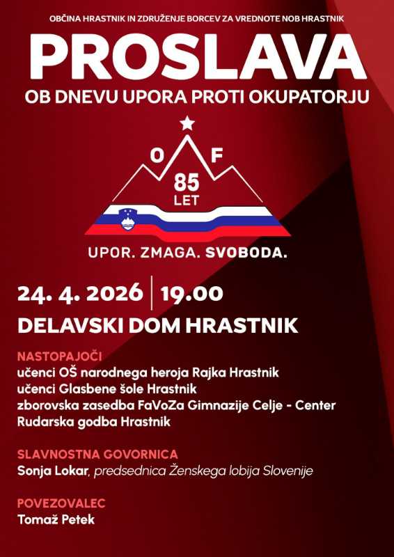 Na proslavi ob dnevu upora proti okupatorju v Hrastniku so počastili tudi stoletnico najstarejšega Hrastničana Zorana Klemena, ki je prav na dan proslave dopolnil sto let. Slavnostna govornica je bila predsednica Ženskega lobija Slovenije Sonja Lokar.