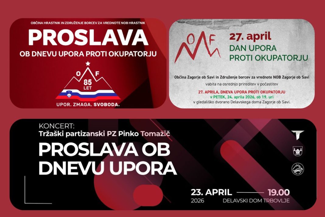 Osrednjo slovesnost ob dnevu upora proti okupatorju v Trbovljah bodo člani Združenja borcev za vrednote NOB Trbovlje v sodelovanju z Občino Trbovlje pripravili danes, v četrtek, 23. aprila, ob 19. uri v Delavskem domu Trbovlje. Nastopil bo Tržaški partizanski pevski zbor Pinko Tomažič, slavnostna govorka bo zgodovinarka Nevenka Troha. »Zbrali se bomo v duhu poguma, dostojanstva in neomajne volje, ki so trajno zaznamovali slovenski prostor in ljudi. Upor proti okupatorju je predstavljal odločen in organiziran odgovor na raznarodovalne pritiske ter temeljno kršitev človekovega dostojanstva. Ta zgodovinski lok se jasno zrcali tudi v Trbovljah, kjer je industrijsko okolje soustvarjalo pogoje za krepitev razredne zavesti, povezanosti in pripravljenosti na skupno delovanje. Mesto to dediščino ohranja v ljudeh, ki so v prelomnih trenutkih znali preseči posameznika in udejanjiti skupnost,« so zapisali v objavi na socialnih omrežjih Občine Trbovlje.