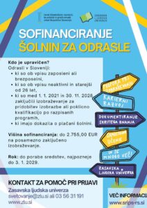 Javni štipendijski, razvojni, invalidski in preživninski sklad RS je 12. septembra 2025 objavil nov razpis za sofinanciranje šolnin, s katerim želi spodbuditi vseživljenjsko učenje in izboljšati dostopnost izobraževanja za odrasle.