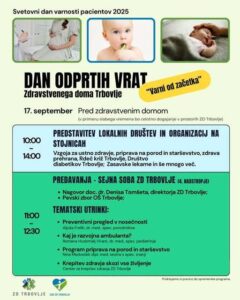 Ta dan, torej 17. septembra, organiziramo v Zdravstvenem domu Trbovlje dan odprtih vrat, kjer se bodo na stojnicah odvijale praktične delavnice, v sejni sobi Zdravstvenega doma pa različna predavanja.