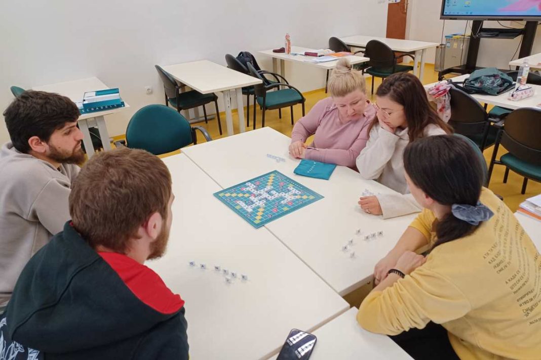 - Scrabble, kjer se tečajniki preizkusijo v sestavljanju besed, kar je odlično za utrjevanje črkovanja in iskanja novih besed.