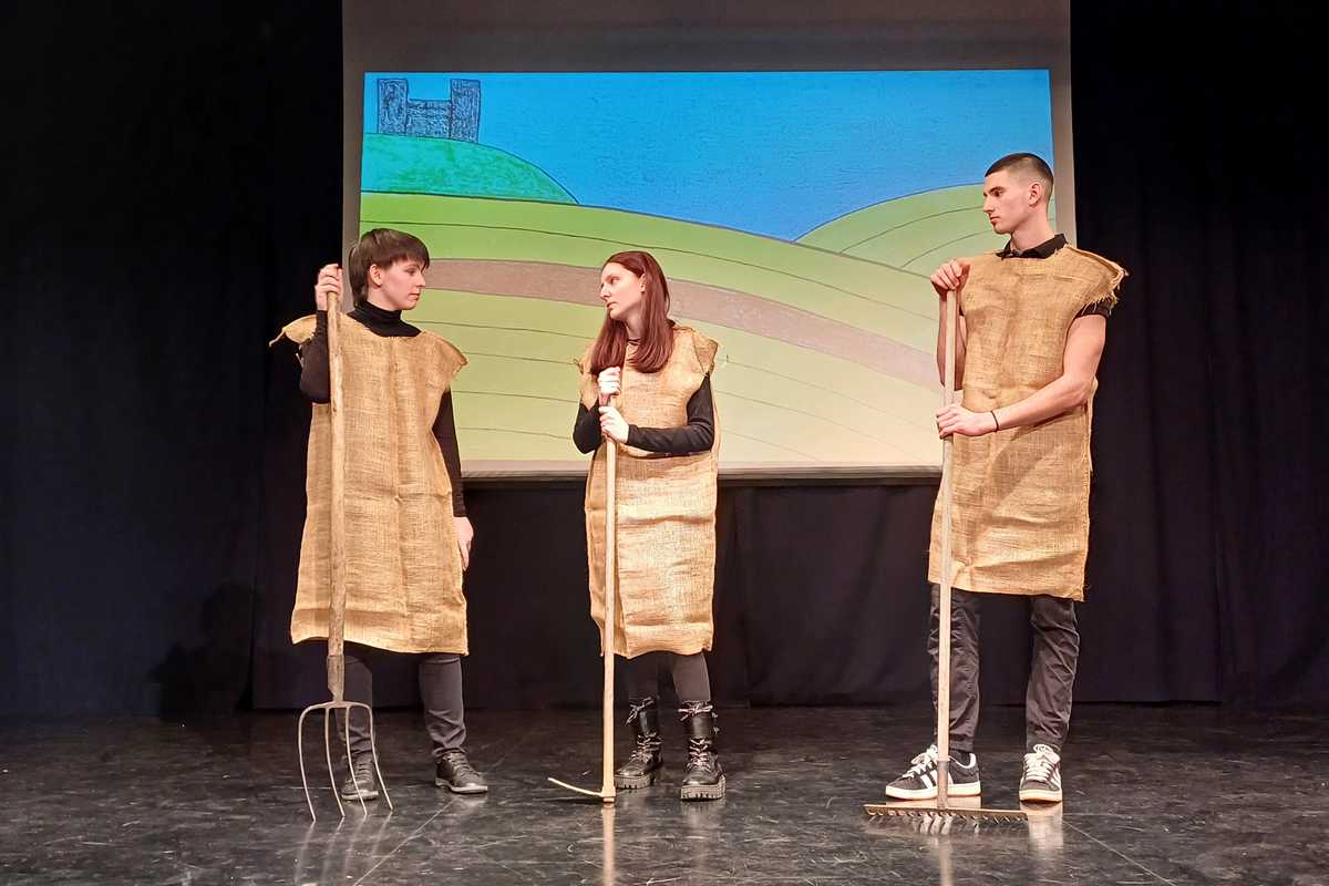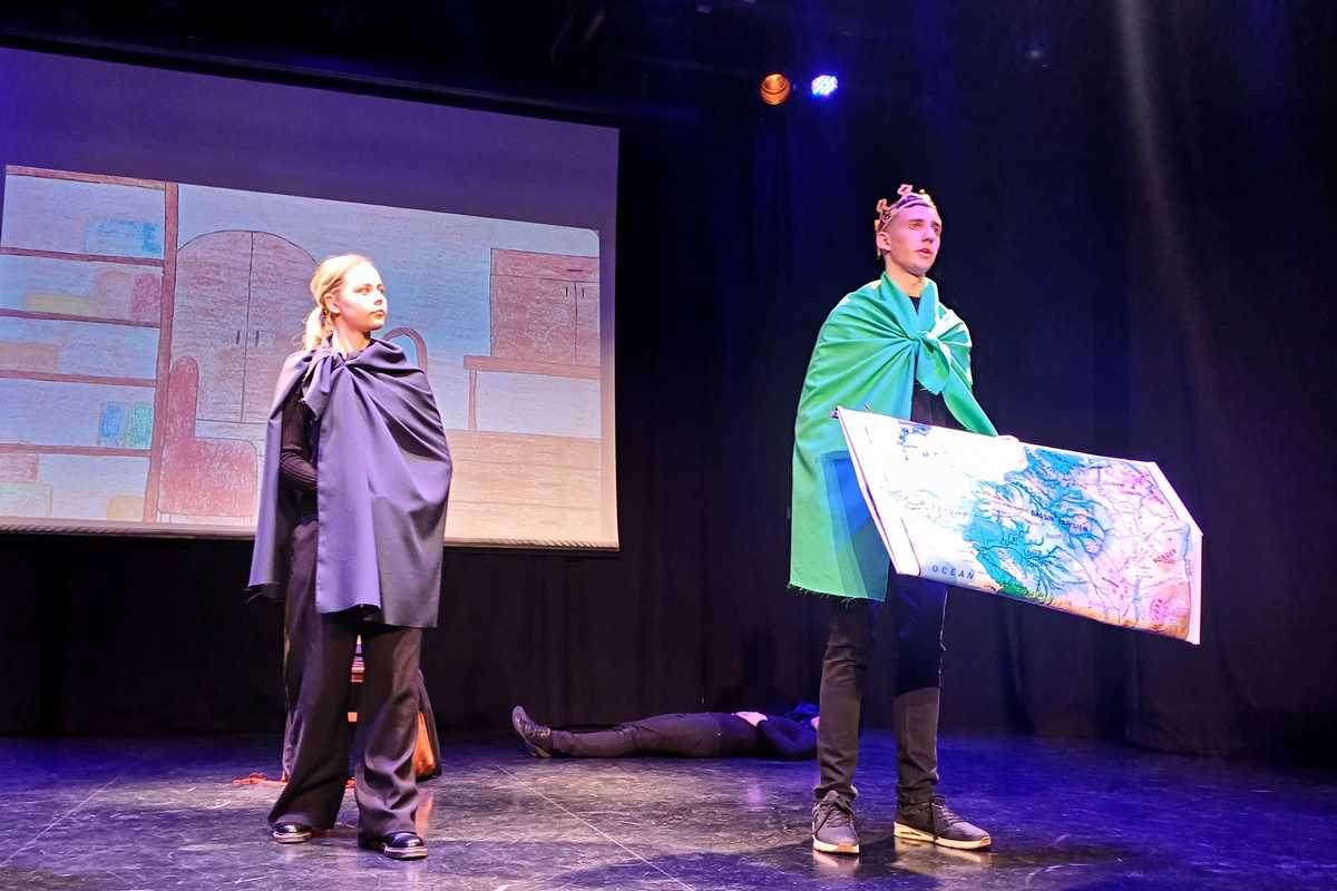 Skupina dijakov Gimnazije in ekonomske srednje šole Trbovlje je 20. marca navdušila novogoriško publiko s svojo predstavo z naslovom Kako so si delili kraljestvo Karla Velikega.