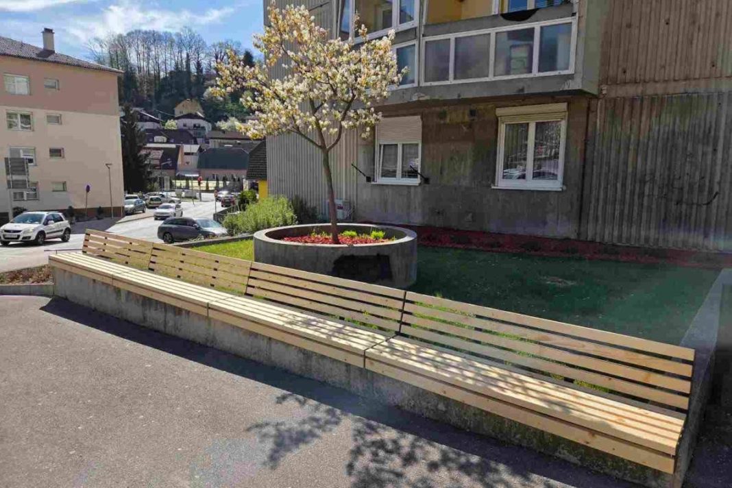 Na Kešetovem, nasproti picerije Dimnik, je dotrajano klop zamenjala nova, sodobno oblikovana in trajnostno zasnovana klopca z naslonjalom.