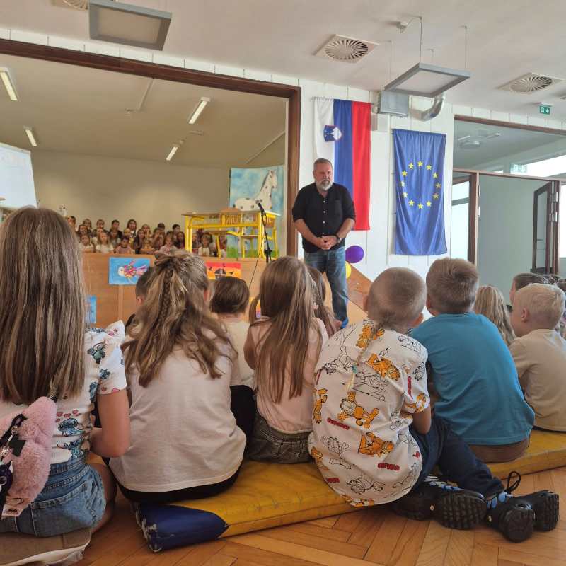 Danes je župan Občine Trbovlje Zoran Poznič obiskal naše osnovne šole in s toplimi in vzpodbudnimi besedami nagovoril prvošolčke, ki prvič prestopajo šolski prag. Kot darilo ob vstopu v prvi razred so prejeli prav posebno knjižico z naslovom Lisica Mica spoznava mestne zgradbe.
